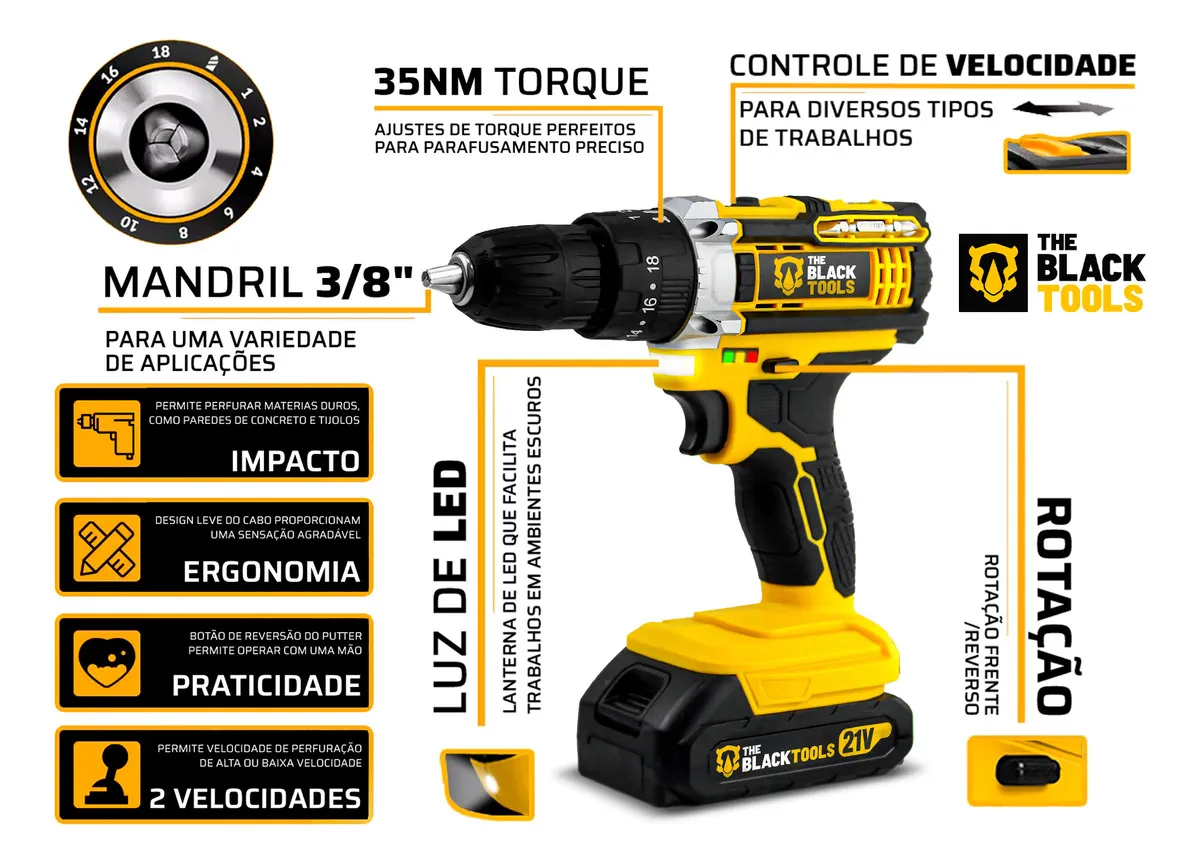 Parafusadeira E Furadeira Impacto The Black Tools Tb-21pw 3/8 Cor Amarelo Frequência 50/60 Hz