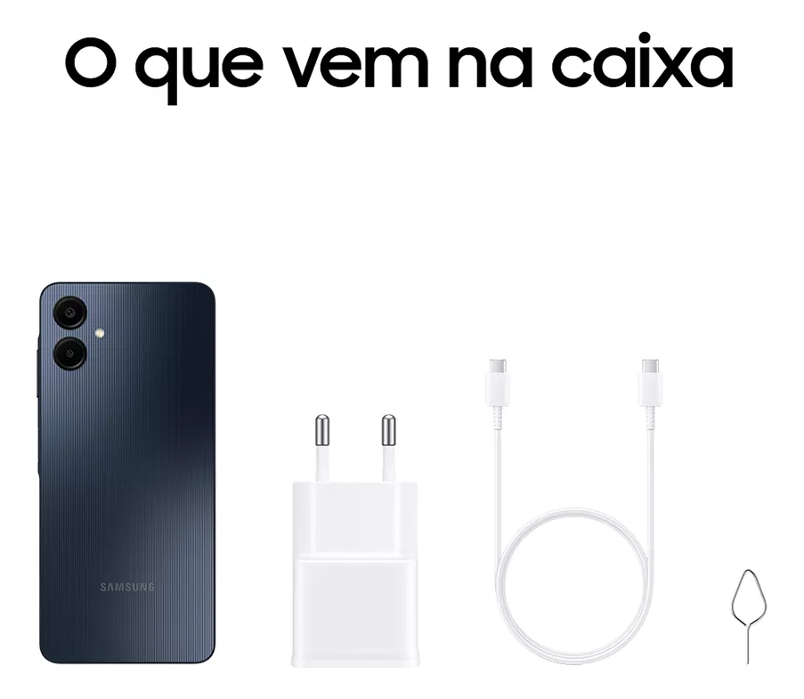 Smartphone Samsung Galaxy A06 4G 128GB 4GB RAM Dual Chip Câmera Traseira 50+2MP Frontal 8MP Tela 6,7″ Android 14.0 Azul Escuro